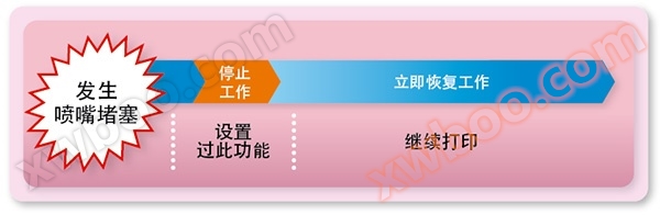 喷嘴异常恢复功能是在喷嘴发生堵塞时,在不降低印刷速度的前提下,使之恢复印刷画质,使印刷得以连续进行。